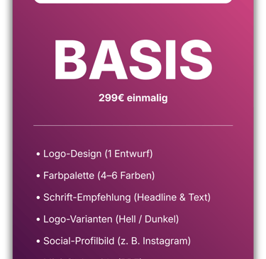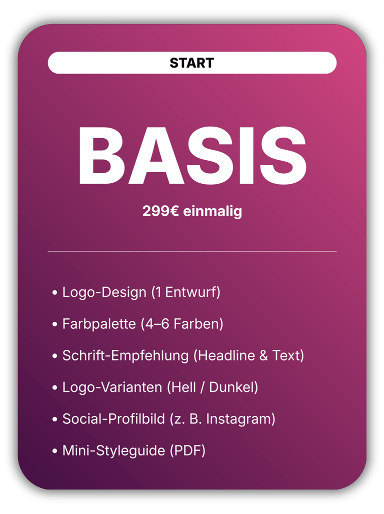 Das Basis-Paket ist der ideale Einstieg für Unternehmen, die eine visuelle Grundlage für ihren Markenauftritt benötigen.