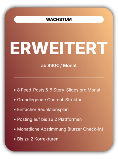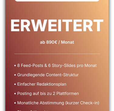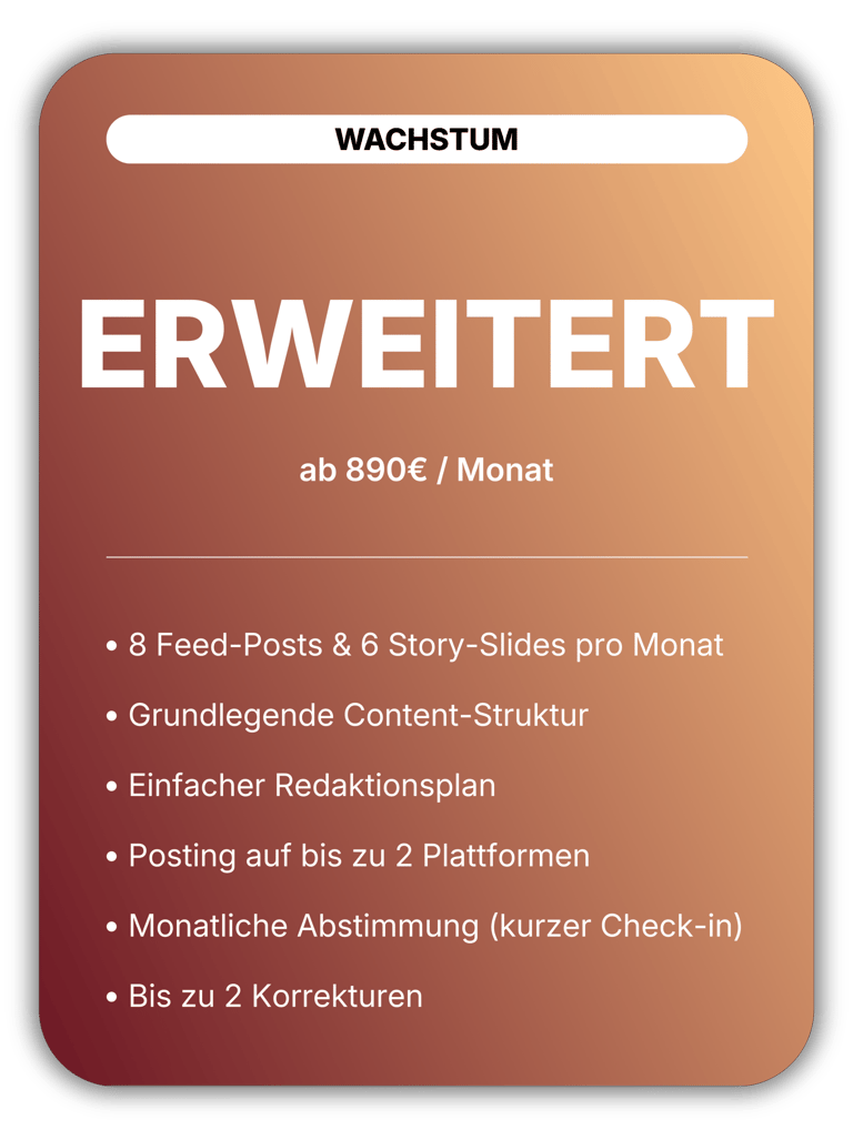 Das Erweitert-Paket ist für Unternehmen gedacht, die Social Media gezielt zur Kundengewinnung und Markenstärkung einsetzen möchten.